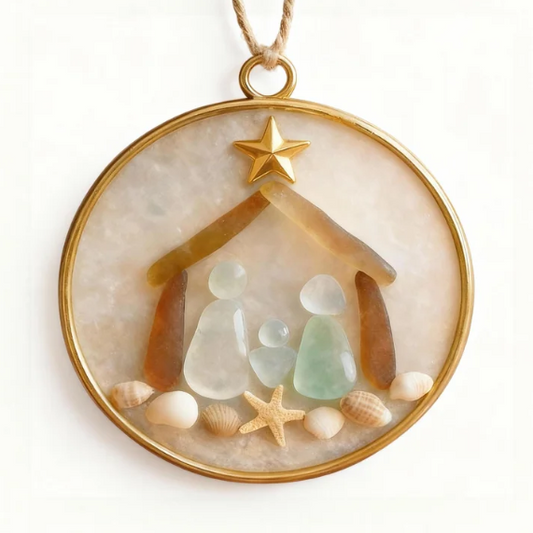 🎄 Coastal Style——Wave-Kissed Whimsy: Handmade Sea Glass Christmas Art Ornaments